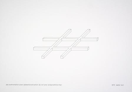 Die Konfrontation einer Balkenkonstruktion mit 3 Landschaftsformen